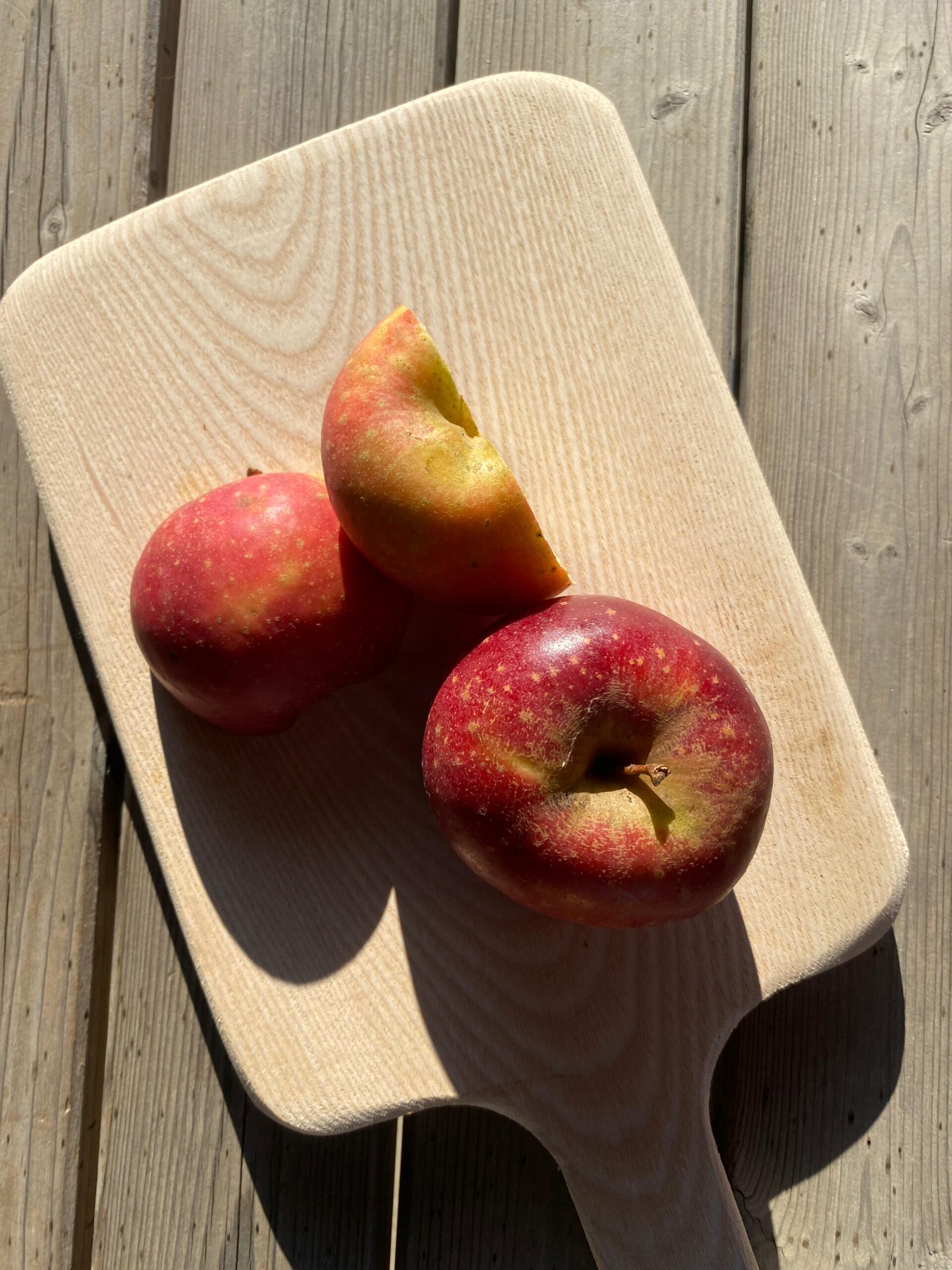 Mela Dalinette, rossa su sotto colore giallo-verde, è la Regina delle mele invernali. Polpa croccante che poi si fa morbida ma non farinosa. Gusto dolce, aromatico con sentori di fragola e banana, indiscutibilmente eccezionale.
